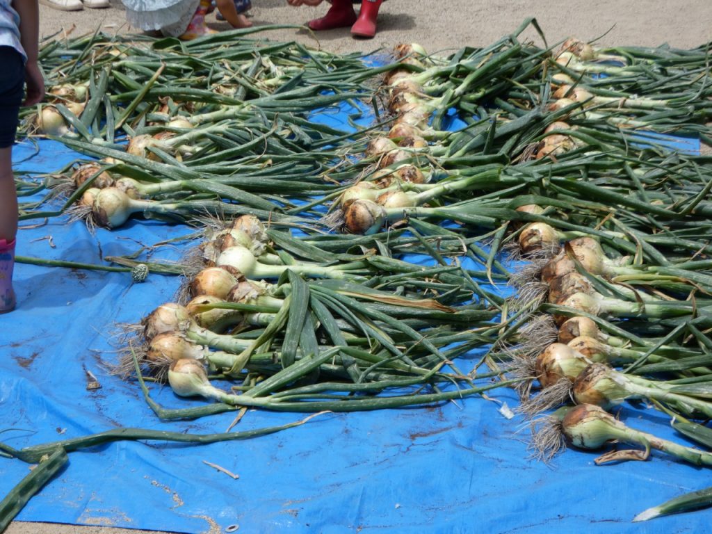 みんなで協力して取った玉ねぎをバスに積むと、バスの中に玉ねぎの香りが充満して、涙目で幼稚園に戻ってきました。