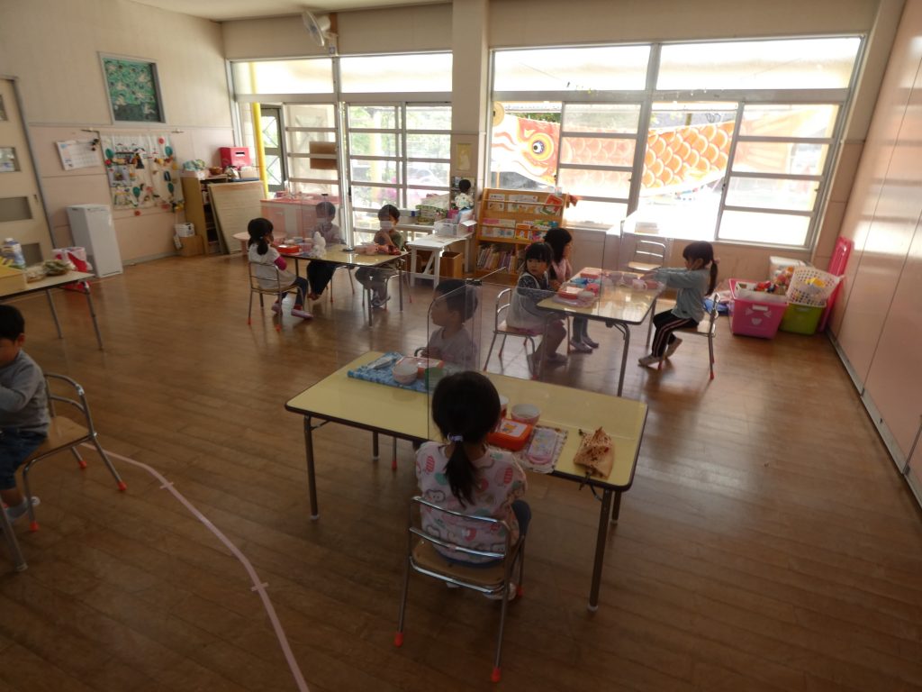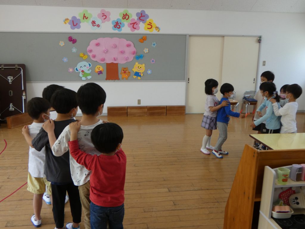 入園式が終わって、午前保育も終わり、20日から通常保育となりました。年長であるばら組の子どもたちは年長児として年下の子どもたちに優しく接してくれています。