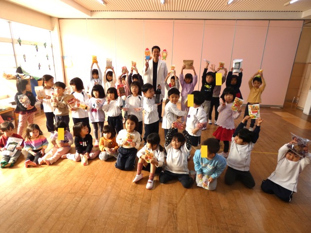 20日のクリスマス会を前に、こひつじ会で講演をしてくださった谷口俊太郎先生が子どもたちの心と体に良い食べ物や調味料をと、謝礼でお渡しした金額以上のお菓子や調味料を届けてくださいました。いただいた翌日から早速「心と体に良い調味料?」と聞きに来る子どもたちでした。美味しくいただいています。