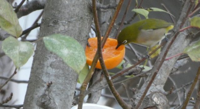 子どもたちが園庭にいないときにやってきて楽しませてくれているのがメジロややまがらなどの小鳥たちです。朝早くにはコゲラが木をつつく音も聞こえてきます。仲よく順番にやってくる小鳥たちは、時に10羽ぐらいいます。