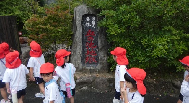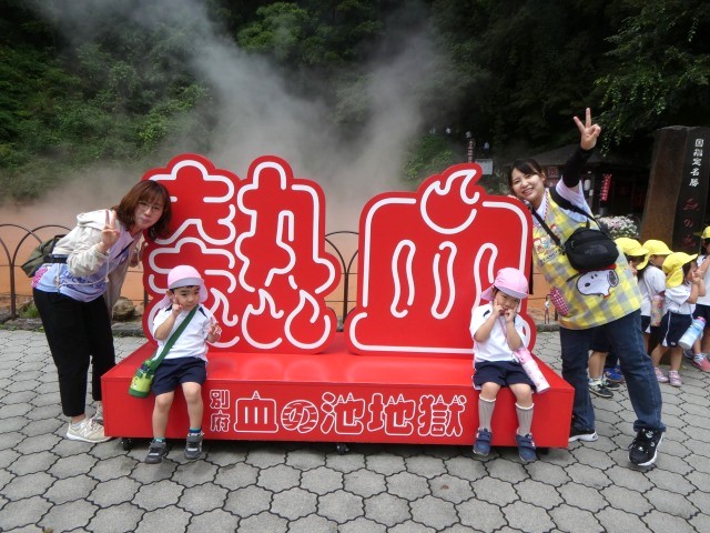 今年度から時機を見て、「せっかく別府にいるなら・・・」ということで地獄めぐりをすることになりました。3年いたら全部の地獄を回れるようにしたいと思うのですが、第1回目は亀川方面にある血の池地獄です。