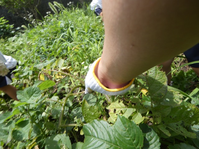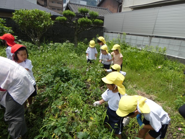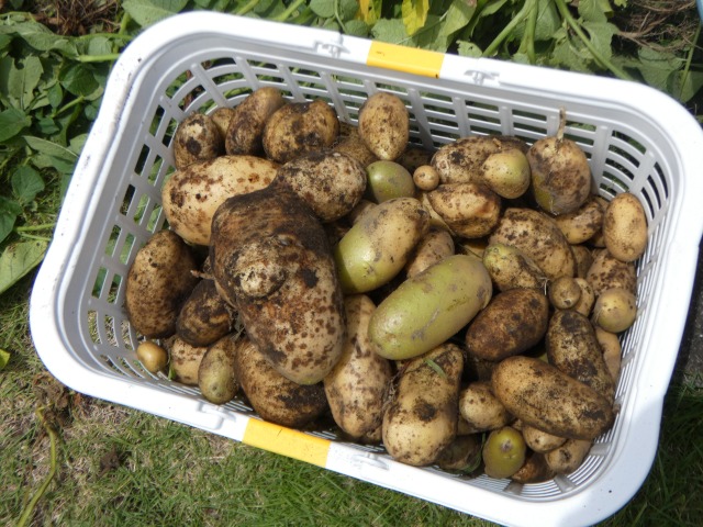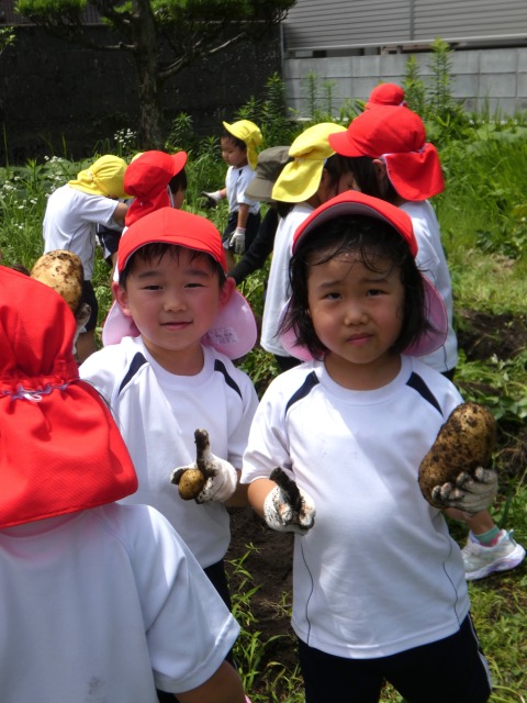 月に1度の英語であそぼうをした後は、歩いて5分ほどのところにある服部さんの中庭にお邪魔して、じゃがいもほりをしました。春休みに預かりの子どもたちと一緒に植えたじゃがいものタネ芋は、神さまにすべてを委ねてほったらかし状態でした。約80日、全てを神さまに委ねていたじゃがいもが顔を出していたので掘りに行きました。植えるときはもっと深く植えないといけません。それが分かっただけでも大成功なのですが、掘ると出てくる出てくる大きなじゃがいも、赤ちゃんじゃがいも、全部で20kg超えています。最初の収穫物は神さまと服部さんにささげて、残りをいただくことになりました。帰りの時に袋に2個ずつじゃがいもをお土産にして、明日以降の給食に使わせてもらうことになりました。